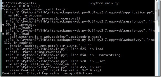为了进一步证实我的想法,我在python脚本中直接使用socket方式,模拟了浏览器的http头信息,直接请求webpy的8080端口,注意,此时需要打开webpy的debug开关