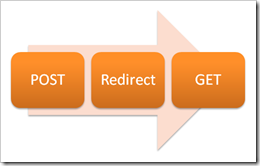 就和你注意到的一样,ASP.NET Web Form存在的问题,在ASP.NET MVC中也存在同样的问题。真正漂亮的选择是,ASP.NET MVC给予我们更多的"自由"来处理这个流程。如果我们在ASP.NET MVC中严格的按照PRG模式,它看起来应该像: